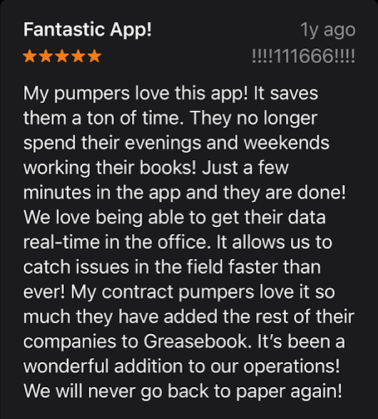At first, I thought transitioning to the GreaseBook would've been tough. We'd done things a certain way for a really long time. But, so far the Greasebooks have been very easy to transfer to. I haven’t had any complaints from the pumpers. I really like how the app makes the pumpers be accountable for the oil. I cant tell you how many times their old gauge sheets would have gauges that were so messed up and then throw a run ticket in there -- it was a nightmare to sort out! With GreaseBook, it makes my guys correct any errors. Thanks for everything!"